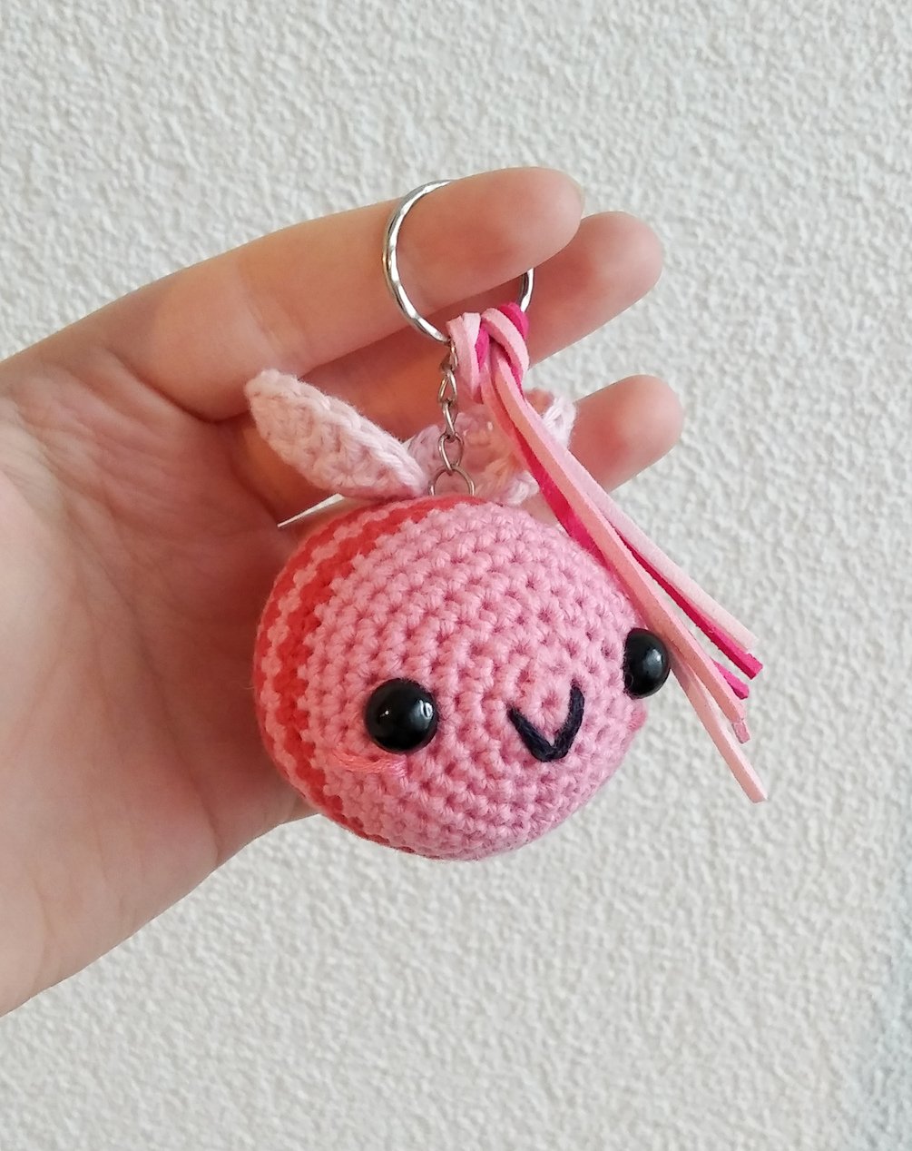 A cute little pink bumblebee keychain with an adorable little face, perfect for Valentine's Day, made with love.